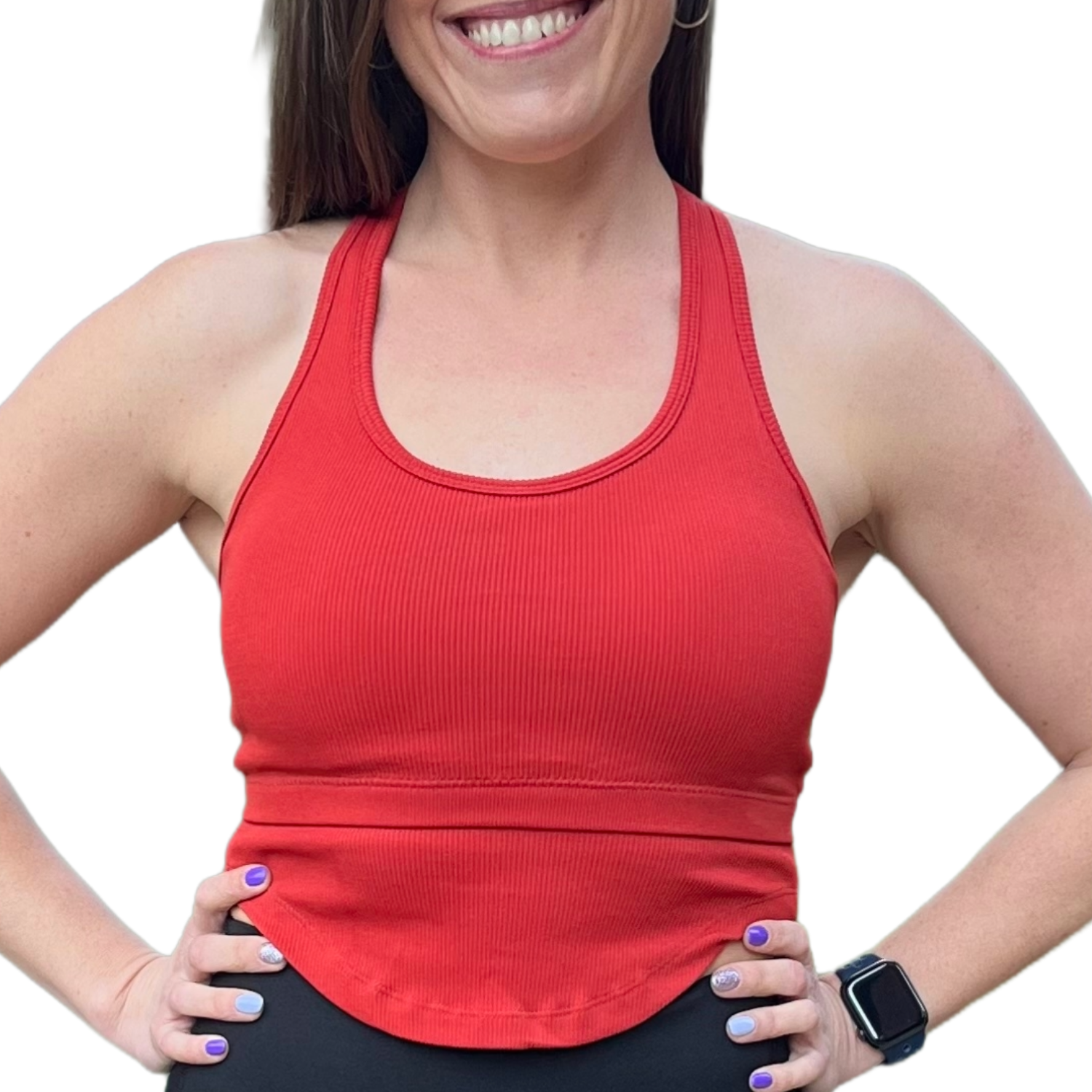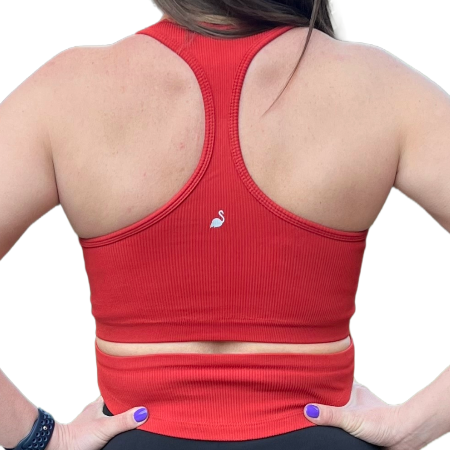Polera sin mangas estilo sudadera, con corte en la espalda a la altura de la cintura, dándole un detalle muy sutil. Viene con almohadillas y deja el busto muy firme.